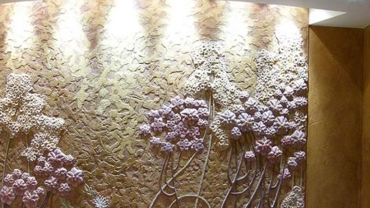 Но за дизайнерски решения се използва декоративно покритиепредлагайки безкрайни възможности за довършване. Не само самата мазилка ви позволява да намерите различни интериорни декорации, но използването на текстурирани ролки или технологии за венецианска мазилка ви позволява да създавате истински произведения на изкуството.