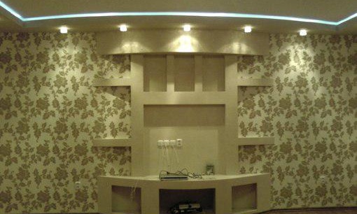 - Когато проектирате ниша за телевизор, помислете за създаването на рафт за едновременно поставяне на книги, цветя и декорации.Това не само ще добави хармония към интериора, но и ще служи като допълнително пространство.
