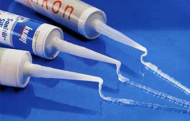 В баните се използват санитарни уплътнители, които имат високи адхезивни свойства и се използват за защита на фуги в пролуките във водопровода и стените.