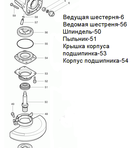 Ремонтът на мелницата на скоростната кутия Makita се състои в подмяна на чифт спираловидни зъбни колела.Скоростите се сменят само по двойки.
