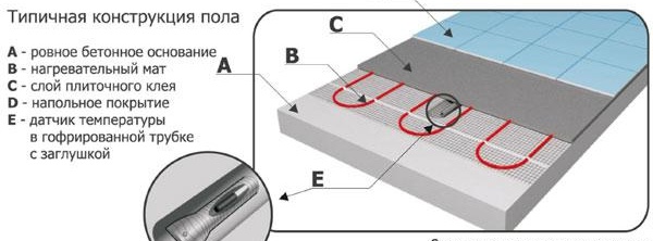 Бетонната замазка се използва само върху нагревателния кабел. Нагревателната рогозка вече не изисква такова голямо външно натоварване. Вместо замазка, за него е достатъчен слой лепило за плочки, което изсъхва много по-бързо. Керамичните плочки могат да се полагат веднага.