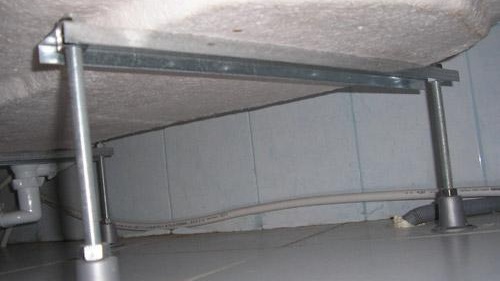 Монтажът на стоманена вана със собствените си ръце трябва да се извършва на крака, не се препоръчва да се монтира само върху тухлена основа. Това ще доведе до лоша стабилност. Въпреки това, не боли да се изградят допълнителни тухлени опори.