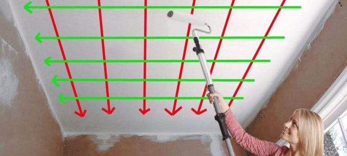 важно! При боядисване на таван или стени, допълвайки движението на валяка в една посока, това, така да се каже, структурира боята в една посока. Благодарение на това таванът не блести и боята лежи по-ясно, без да има мрамор.