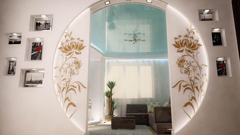 При слоесто оформление също си струва да вземете решение за довършителния материал (боя, тапет, гипсов камък), както и осветление (в цялата арка или само в горната част), или може би като цяло , телата ще бъдат излишни.