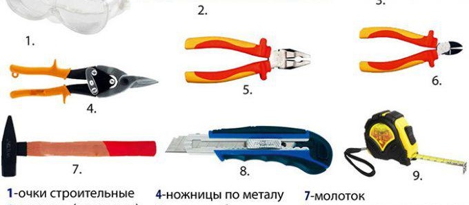 - За създаване на рамка: ножици за рязане на метал, отвертка или набор от отвертки, нивелир, строителен нож и комплект остриета за него.