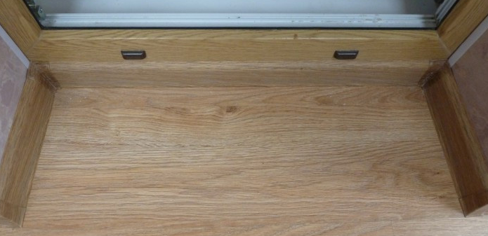 При липса на разлики във височината оптималното решение може да бъде праг от ламинат. В допълнение, решението ще позволи конструктивно да се подчертае балконската врата и да се даде визуална комбинация на материала с пода.