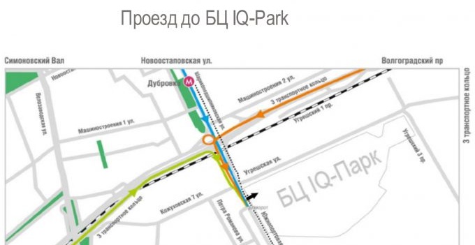 Угрешская - На кръстовището с ул. Ugreshskaya вдясно - офис сграда BC-IQ Park