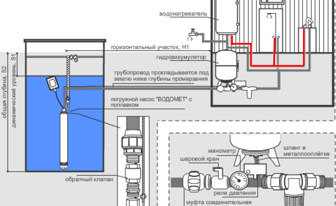 Схема за свързване на помпена станция към кладенец в страната