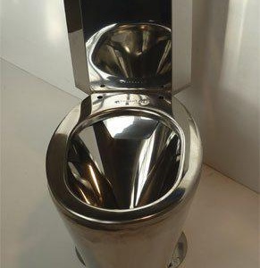 Металните са най-издръжливи, така че са особено разпространени в обществените тоалетни. Подобно на санитарния фаянс, металът не изисква специални условия за почистване. Сред недостатъците на материала има ниска топлопроводимост, следователно, за да не се охлади върху него, той трябва да бъде оборудван с дебела неметална седалка.