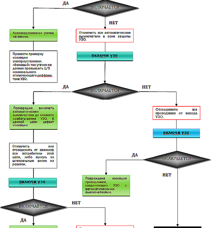 Трябва да се има предвид, че RCD се изключва в случай на изтичане на земя, но ако вземете фазата и работите нула, това ще се счита за връзка с натоварване и изключването няма да се случи , което е изпълнено с трагедия.