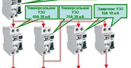 За големи домове, където цялото окабеляване може да бъде една миля или повече, RCD на входа на къщата е настроен на номинален ток от 100 милиампера и повече, тъй като при такава дължина на линията неизбежно има изтичане, което може да доведе до фалшиво задействане на RCD. След това трябва да свържете RCD в щита за всяка група поотделно с номинален ток от 30 милиампера на утечка. Това ще защити конкретната зона.