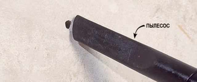 Отворът се почиства отвътре с дюбел пирон, захванат в клещи. Освен това всички малки строителни отпадъци се отстраняват с прахосмукачка. Почистената дупка се покрива с шпакловка. Движенията на шпатулата трябва да са както натискащи, така и изравняващи.