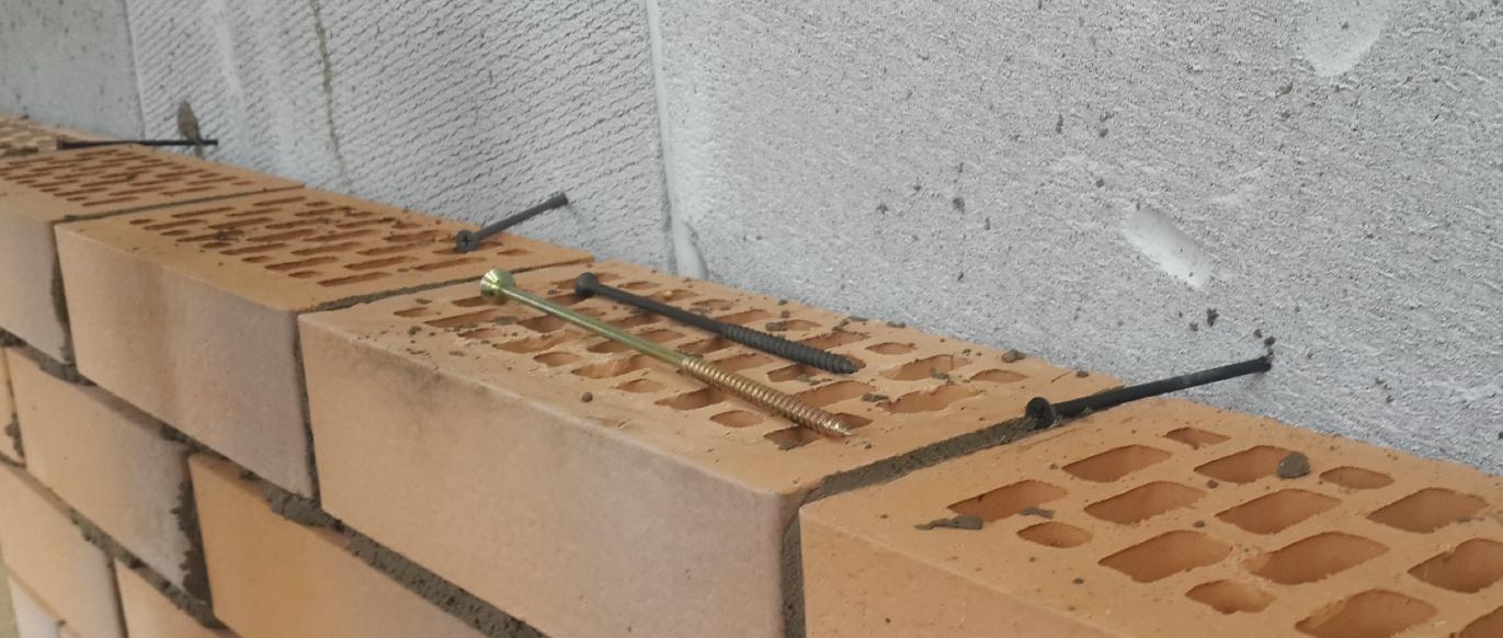 Доста крехкият материал е клетъчен бетон; закрепването на облицовъчни тухли в случай на работи с отвори трябва да се извършва по специален начин, тъй като е необходимо тяхното укрепване. Ако това не бъде направено, облицовката ще се напука с времето, за да се предотврати това по време на строителството, в шевовете между облицовъчните тухли се полага малка метална пръчка с диаметър 5 mm. Разстоянието може да е различно в зависимост от ширината на използваната зидария. Елементите са свързани чрез точкова заварка и използване на профилна пръчка от същото сечение. Важно е след монтирането на пръта шевът да е добре запечатан.