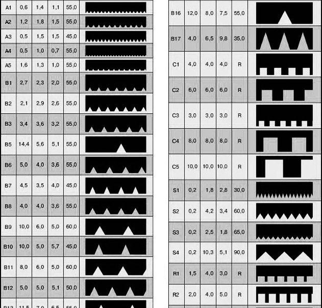 Както всеки друг инструмент, шпатулите също имат свои собствени маркировки, които показват размера и формата на зъбите. Пише се като комбинация от букви и цифри. Примери за маркировки са показани в таблицата по-долу: