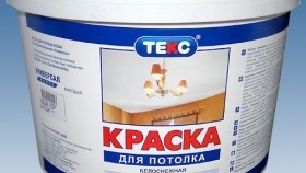 Характеристика на тази боя е нейната паропропускливост, която позволява на повърхността на тавана да „диша“. Характеристиките му обаче не са впечатляващи: консумацията на един слой е 4 квадратни метра на литър боя. Но бързо съхне: около 40 минути. Цената на универсалната акрилна боя за тавана на марката Tex варира от 500 до 600 рубли за 7 литра. Това е сравнително икономичен вариант.
