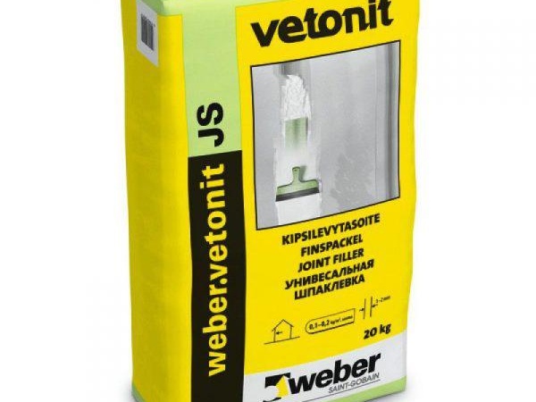 JS weber vetonit е полимерен кит за уплътняване на фуги на гипсокартон. Максималната дебелина на шпакловката е 5 мм.