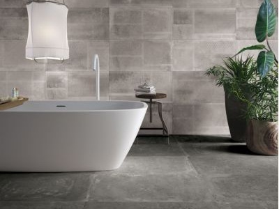 Първият тип са керамични плочки или гранитогрес с текстурирано решение под формата на естествен камък. Каменните изделия и като цяло текстурата на такъв материал никога няма да загубят признанието си сред потребителите, поради което това решение набира все по-голяма популярност.