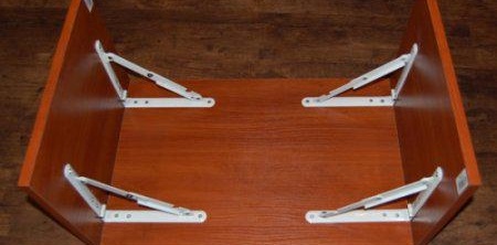 Страничните части са прикрепени към плота с помощта на самонарезни винтове и допълнително подсилени с малки ъгли. Това подобрява здравината и надеждността на конструкцията. Остава само да я боядисате или довършите според вашите вкусове и предпочитания. Няма нищо трудно в такъв дизайн и ако човек обича да тренира или да се забавлява в легнало положение, тогава защо не помислите как да направите маса за лаптоп със собствените си ръце.