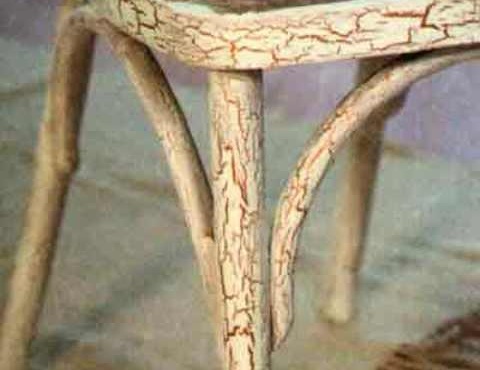 - Craquelure - също дава ефект на стареене, но това е по-лесен начин. За да направите това, ви е необходим специален лак, който имитира дървени пукнатини. Има два вида пукнатини: двустепенни и едностъпални. При едностъпков кракел се нанасят два слоя боя в различни цветове, а между тях слой специален кракел лак със съхнене. При двуетапния метод се нанасят два вида лак с междинно изсъхване.