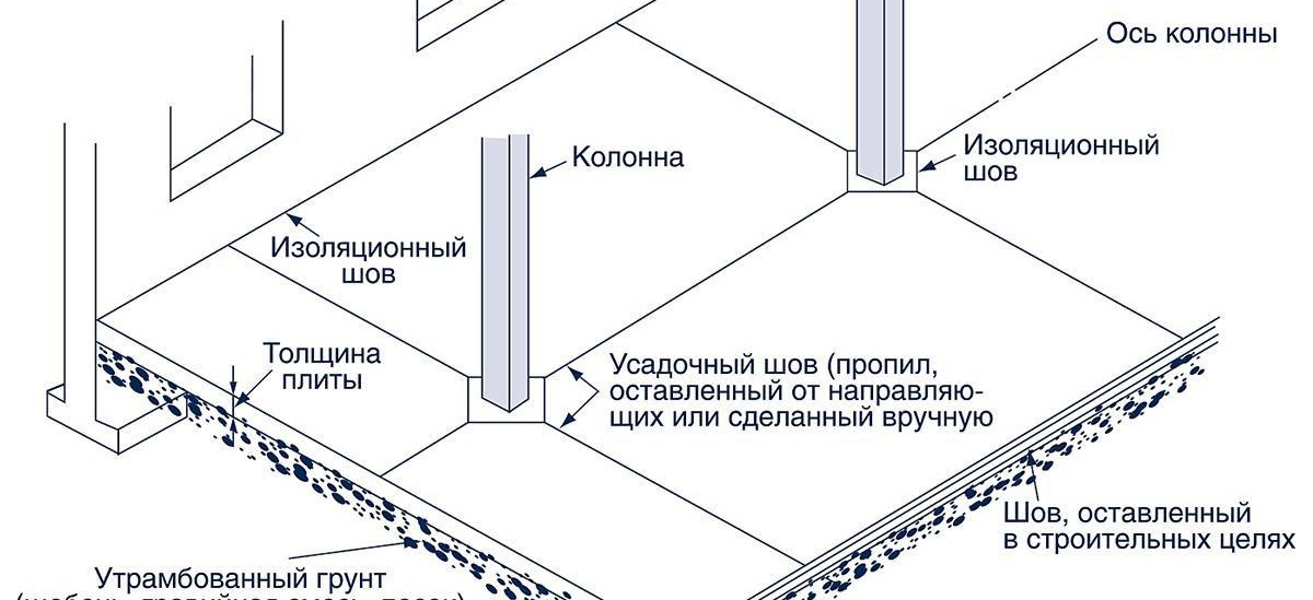 - Изолиращ. Изпълняват се по протежение на стените, евентуални декоративни елементи в помещението (колони), около фундаментните издатини за оборудването. Тези шевове са предназначени да предотвратят пренасянето на напрежение върху замазката от самата конструкция.