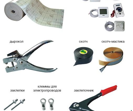По отношение на инструментите, комплектът е много прост: отвертка, клещи, резачки за тел, нож, чук, тестер и др. Може да се използва и специализиран инструмент, например за затягане на контактите. инфрачервен филм под под ламината