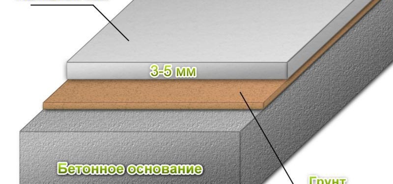 - Тънък слой. Дебелината на слоя не надвишава 5 mm. Основната функция на такъв под е да предпазва основата от фактори на околната среда. Количеството му ще зависи от вида на сместа, производителя, полученото качество. Ако добавите малко повече, увеличете консистенцията, силата ще се увеличи леко.