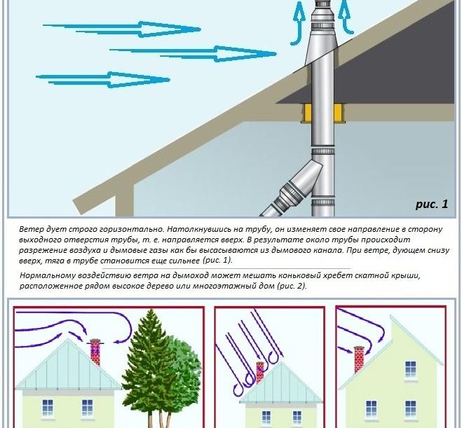 За да работят нормално отоплителните системи и да постигнат висока ефективност, е необходимо да се изчисли височината на комина над покрива и неговото напречно сечение. Голяма празнина в тръбата ще създаде силно течение, бързо охлаждане на въздуха и образуване на кондензат. Това е нежелателно за отоплителната система.