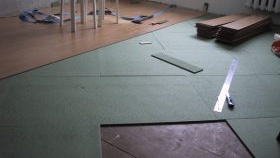 Изравняване на повърхността. Друга функция на основата е да изравнява малки неравности. Това е много важно при полагане на ламинат, тъй като издръжливостта на ключалките зависи от плоскостта на основата. Според технологията допустимите разлики на пода не трябва да надвишават 2 мм на 1 м. Прекалено дебелата подложка под ламината обаче по-скоро ще попречи на неравностите да се скрият, защото тогава той ще провисне на фугите при ходене. За да се предотврати разпръскването на шевовете след шест месеца, подовата повърхност се подготвя внимателно преди нанасянето на мазилката (вижте статията за полагане на ламинат върху паркет.