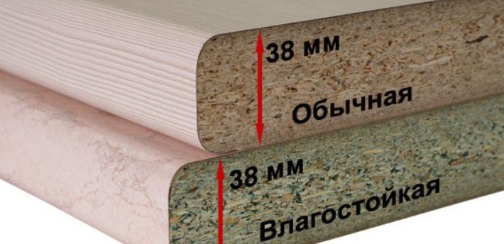 Завършването на всички крайни зони и ръбове със сигурност се извършва, освен това това завършване се извършва много надеждно. В противен случай влагата ще проникне във вътрешната част и материалът ще започне да набъбва. Монтажът на плота в кухнята и плота се извършва с уплътнители, които предпазват ПДЧ от вода.