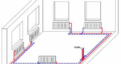 - Двойна тръба. В допълнение към права тръба с гореща охлаждаща течност, тръба от нагревателните елементи, наречена „връщане“, отива към котела. Тук вече има равномерен топлопренос към всички компоненти на системата. Въздухът става комфортен във всяка стая. Трябва да знаете как да направите правилно окабеляването на отоплението.
