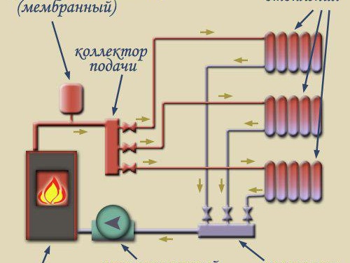 В отоплителната система първо трябва да извършите висококачествена инсталация на циркулационната помпа. Само след това могат да бъдат разположени захранващите и връщащите тръби.Ако се използва естествена циркулация, тя няма да може да насочва охлаждащата течност през системата. Първоначално, например, водата се подава към колектора, след което се изпраща към всички компоненти, затопляйки въздуха вътре в помещенията на частна къща.