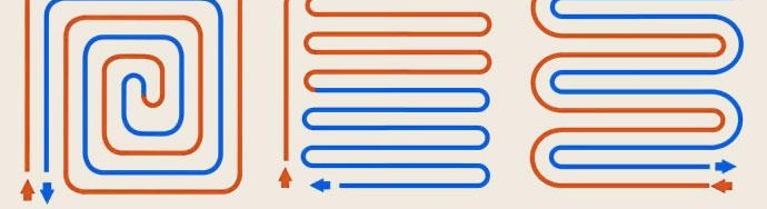 Най-лесният начин за инсталиране - "змия". Но веднага си струва да си припомним основния му недостатък, когато горещата вода влиза в една част от стаята и напуска обратното. Следователно нагряването на зоната близо до връзката ще бъде по-голямо от това на далечната зона. За равномерно разпределение на температурата в помещението се използва схема "спирала".