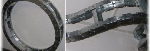 За да монтирате огъващ профил за гипсокартон, не е необходимо да режете страните му. Продуктът се състои от 2 части, изработени под формата на ъгъл. Във всеки край има специални ключалки, с които профилът лесно се свързва до необходимата дължина. Отстрани има жлебове - по време на монтажа части от продукта влизат в отворите, създавайки здрава огъваща се конструкция, готова за монтиране на рамката.