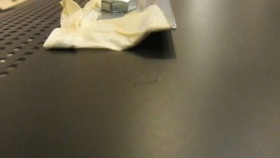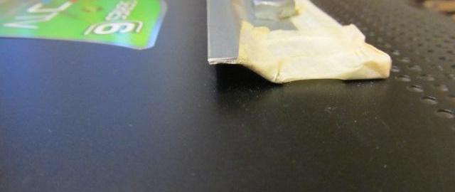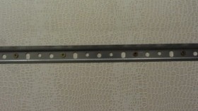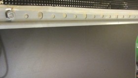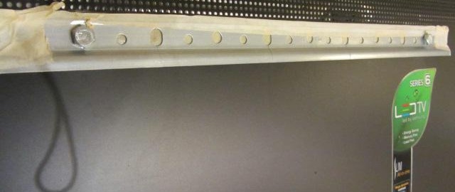 Измерете размера между скобата (моите дупки съвпадат) и изрежете или счупете по прореза. Ние правим същото парче релса за стената. Закрепете релсата към вашия телевизор с винтове.