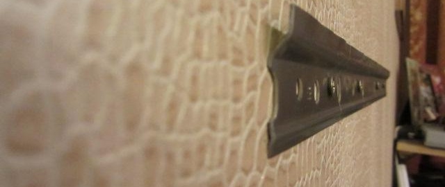 използвайте релса, която обикновено се използва за фиксиране на стенни кухненски шкафове.