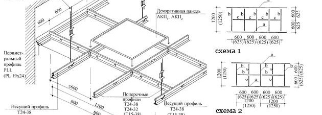 - Измерете тавана и направете хартиена решетка в подходящия мащаб с отвори 600 на 600 mm.