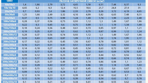 Полученият резултат ще бъде по-точен с малка ширина на шевовете. И за по-добро и по-бързо изчисление е по-добре да използвате калкулатора за консумация на фуги за фуги. Тук се използва по-прецизна и сложна система за получаване на необходимите данни.