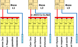 - Принципът на създаване на таблица не е сложен - всички товари в жилищното пространство трябва да бъдат събрани в групи, електрическата мощност се изчислява за всяка група отделно. Използвайки този метод, ще бъде по-лесно да разпределите мощността между фазите.