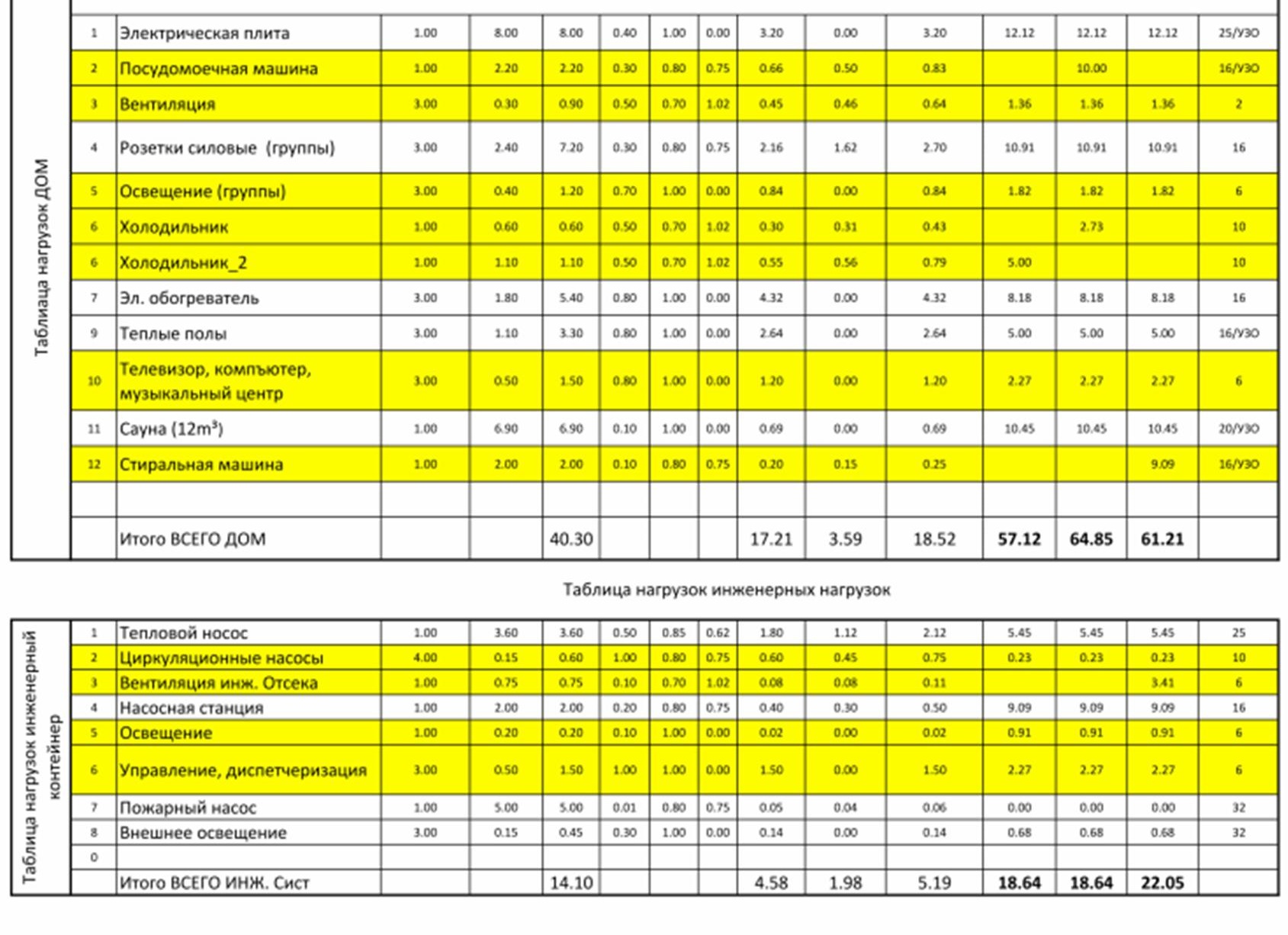 - Трябва да въведете списък на товарите, налични в инсталацията, или устройствата, които се планира да бъдат инсталирани. Грамотността на съставянето на таблицата зависи от внимателния подбор и показателите на данните, които се въвеждат в таблицата.