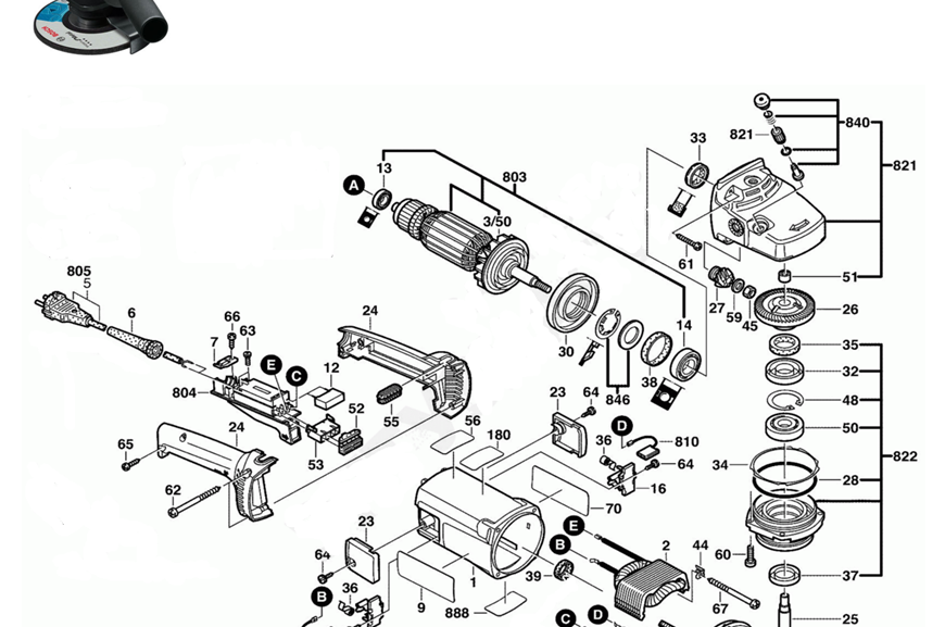 - Познавайки общата схема на ъглошлайфите на Bosch, можете безопасно да предприемете демонтажа на смазочния инструмент;