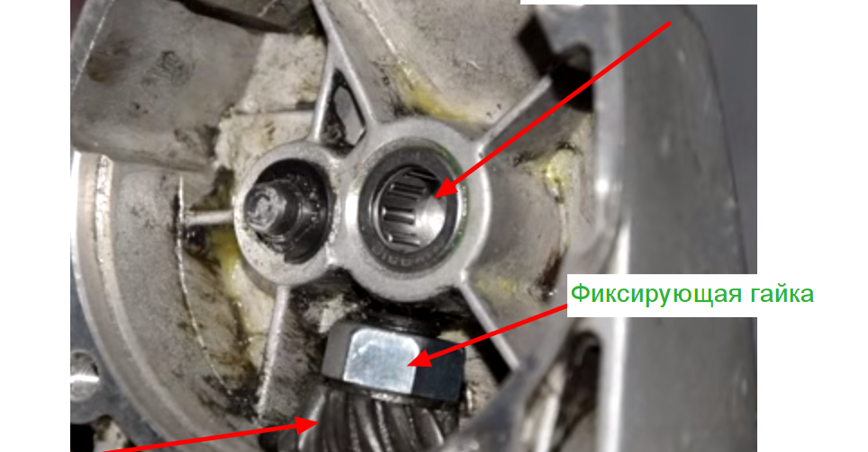 Когато гайката се разхлаби, валът на ротора може да бъде изваден от корпуса на скоростната кутия. Задвижващият пиньон е фиксиран върху вала на ротора с ключ.
