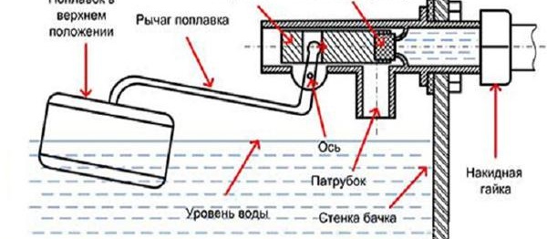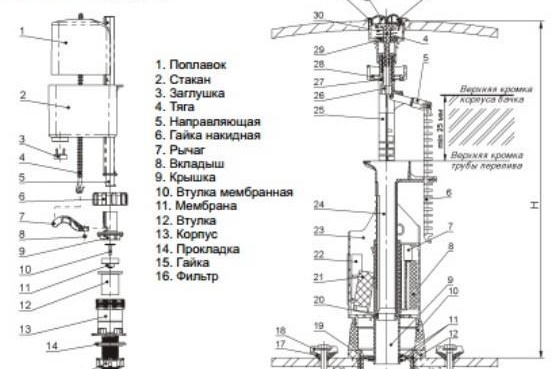 - С нивото на водата се издига поплавъкът, който, достигайки определена височина над дъното, блокира запушването на водопровода.