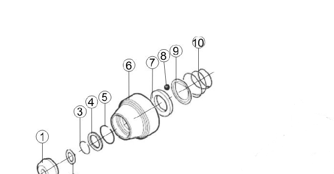 Отгоре поставете коничната пружина поз.10, специалната шайба поз.9 и поставете топката поз.8.