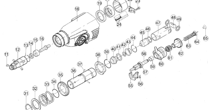 Ще разгледаме сглобяването на ударния блок, като използваме примера на цевта на перфоратора Interskol 26/800ER.