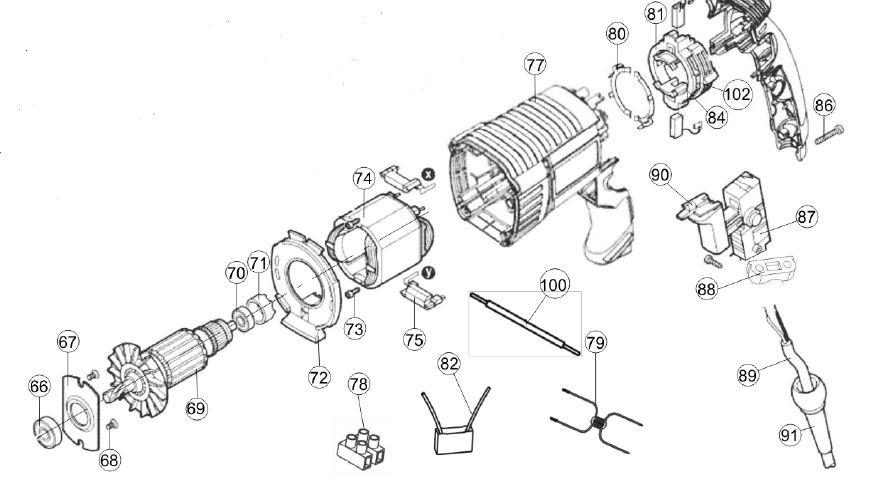 Остава да поставите бутона за превключване poz.87, да свържете проводниците към клемите на статора, да скриете проводниците в дръжката на перфоратора.