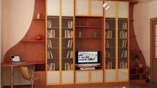 За хола шкафът трябва да има специален отворен рафт за телевизор или друго оборудване, тъй като в дневните е обичайно да прекарвате свободното си време с цялото семейство. Отворените рафтове за книги или сувенири няма да бъдат излишни.
