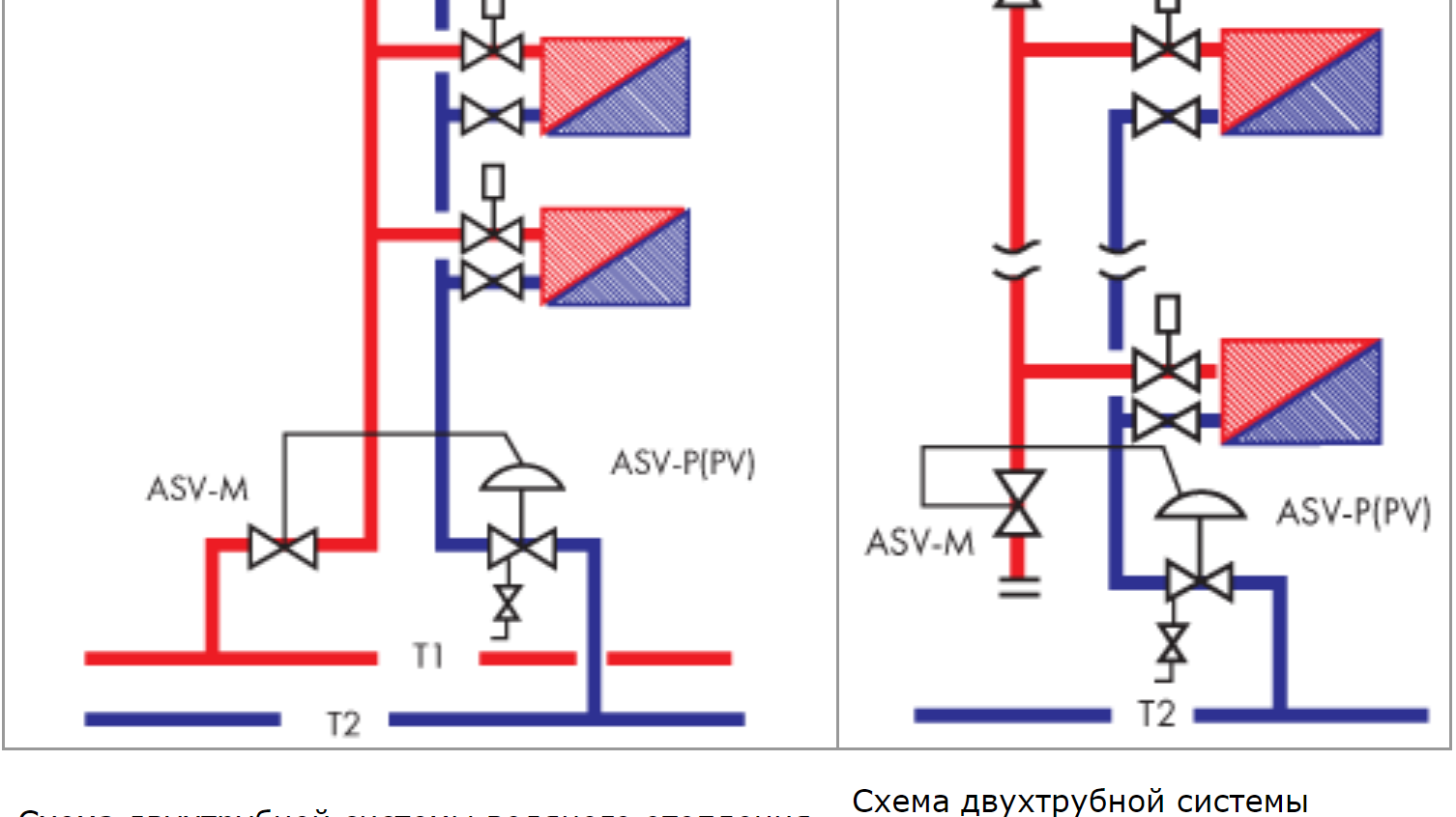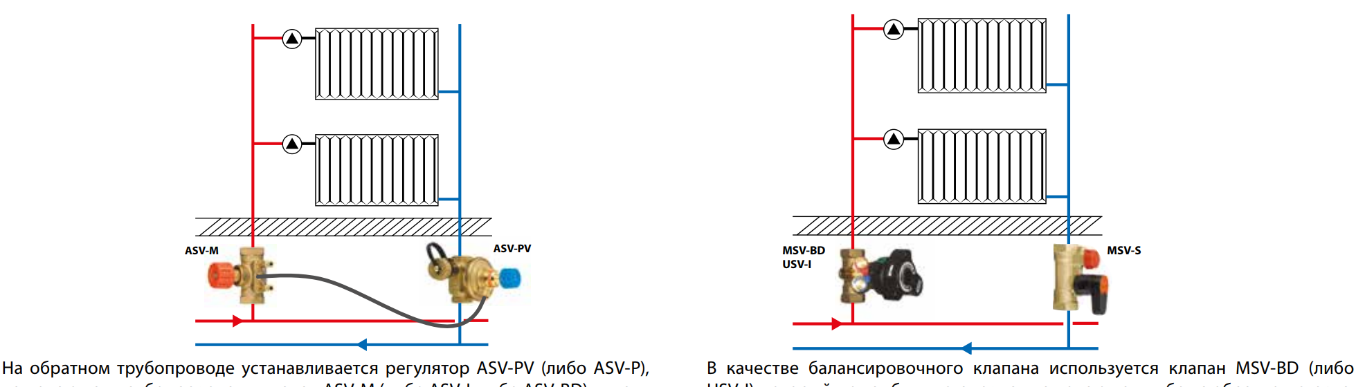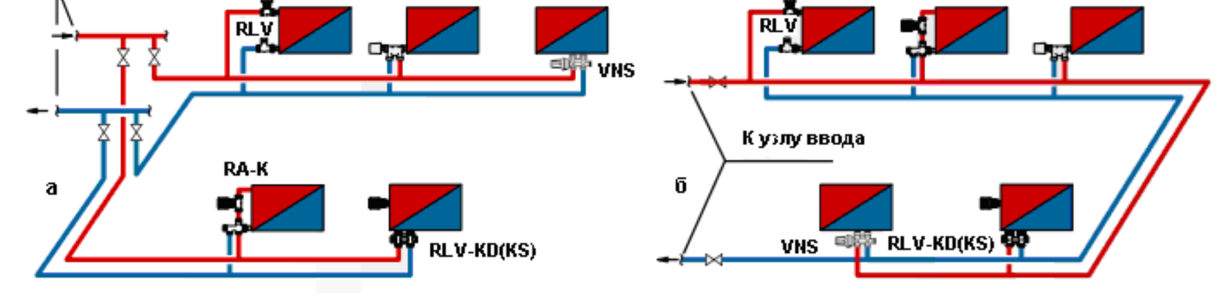 Индивидуален проект за отопление на апартамента позволява пълна независимост. От нагревателната точка на подовата група горещата вода циркулира през питите към отоплителните прегради на всеки отделен апартамент. Монтажът на ръчен балансиращ вентил ASV в тръбопровода превръща отоплението на апартамента в подсистема с ръчно регулиране, независимо от налягането и потока на охлаждащата течност.