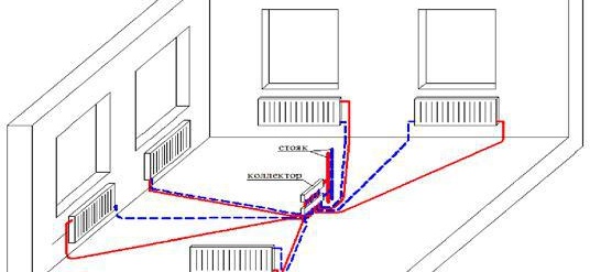 Схемата на отоплителния тръбопровод на апартамента включва: