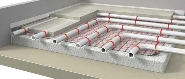 Ако горещите рогозки са стандартни, дори от двете страни, тогава е по-добре да поставите армиращ слой от метална мрежа, към която ще бъде прикрепен тръбопроводът. Между другото, тръбопроводът също влияе върху дебелината на целия "пай" на топъл под.
