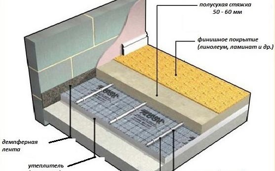 - Висока устойчивост. Циментова пясъчна замазка подовото отопление трябва да може да издържа на външни натоварвания и механични натоварвания.